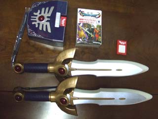 ゲーム 2011/09/11 剣神 ドラゴンクエスト 甦りし伝説の剣 スクエアエニックス 子供向けゲーム機とでもいいましょうか。 WiIIとか発売される前に、体感的に入力できるゲーム機として発売されたのが、コレ。 附属の剣を振ってモンスターを切りまくるゲーム。 結構大きい箱です。 本体と、剣、セーブのためのカードが附属。 電池駆動ですが、別売りでアダプターがあります。 当然アダプターでしょ。 写真には2本、剣が写っていますが、1つの箱に1本だけです。 対戦用にもう1つ買いました。 ストーリーモードがメインです。基本は道を進み、出てきたモンスターをブッタ切るというスタイル。剣のほか、魔法も使え多彩な攻撃が可能です。 2人対戦もアリ。但しコマンドを選んで戦うタイプで、実際に斬りあわないのがオシイ。 クリアしないとセーブできないとか、メニューに戻るコマンドがなかったりと作りの甘さが目立ちますが、ステージが進むと、仲間が増えたり、魔法が使えたりと子供向けとしてはなかなか楽しめます。 やりこみ度の高い大人はモノ足りませんが、ゲームに不慣れな大人や小さい子供がガチャガチャ遊ぶには丁度イイ。 剣を振れば斬れる。分かりやすい操作がグッドでしょう。 ゲームマニア以外の人にオススメ。難しい謎解きやストーリーなどない一本道ですから気軽にプレイできます。 ただ体力を使います。セーブポイントまでたどり着く頃には、それなりの運動をこなしているハズです。 ということは・・・ダイエット効果アリ?! ↓新品もまだ売っているんですね。続編も出ていたみたいです。知らんかった…。 [0回]PR