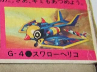 プラモ 2011/09/02 G-2 コンドルアタッカー ガッチャマンⅡ バンダイ製 古いプラモが出てきました。 科学忍者隊ガッチャマンⅡのジョーの愛機、 G-2 コンドルアタッカーです。 でも、中身は・・・。 いやー懐かしい。と思って、箱を開くと、ゴミしか入っていませんでした。 中身は何処へ???謎です。 ま、中身があっても私が作ったものならテキトーに作られたいい加減な状態だと思います。 懐かしむだけなら箱だけでもヨシとしますか。作ってなかったら貴重だった?かな? 箱に解説があり、 「コンドルのジョーが操縦する水陸両用車。 最高速度は陸上で600Km/h、水上で60ノット、水中で25ノットだ。 また、地底でも運転可能で、Gメカのなかでは最も圧力に強い。 ●接着剤不要。ファイヤー・ターゲッター脱着可能」 だそうです。 って陸上で600Km/hは車両の速度を超えてますな。 箱の横に他のメンバーのGメカがラインナップ。何故かG-3がない。どんなだったか?G-3。 そういえば早朝6時くらいの「ZIP!」って日テレの番組内で「おはよう忍者隊ガッチャマン」ってやってるの知ってます?ちゃんとタツノコプロが作ってて多分FLASHアニメ。動きは少ないけど、回によっては笑えます。ご覧あれ! ↓ガッチャマン知らない方はコレラをチェック!ジュンのフィギュアがスゲぇ!!必見! 「おはよう忍者隊 ガッチャマン」は←ここから日テレHPへいけます。 [0回]PR